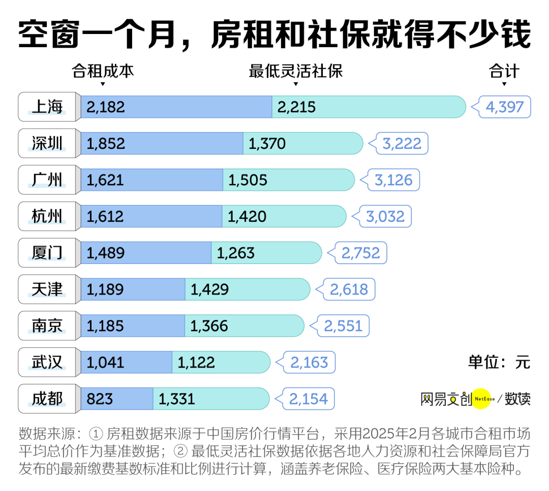 至于其他生存刚需,就算吃饭全靠拼好饭,加上水电费、交通费等杂七杂八的费用,月底回看账单上密密麻麻的支出,也足以让人感到窒息。只有长叹一句,职场空窗期虽然不犯法,可它要命。